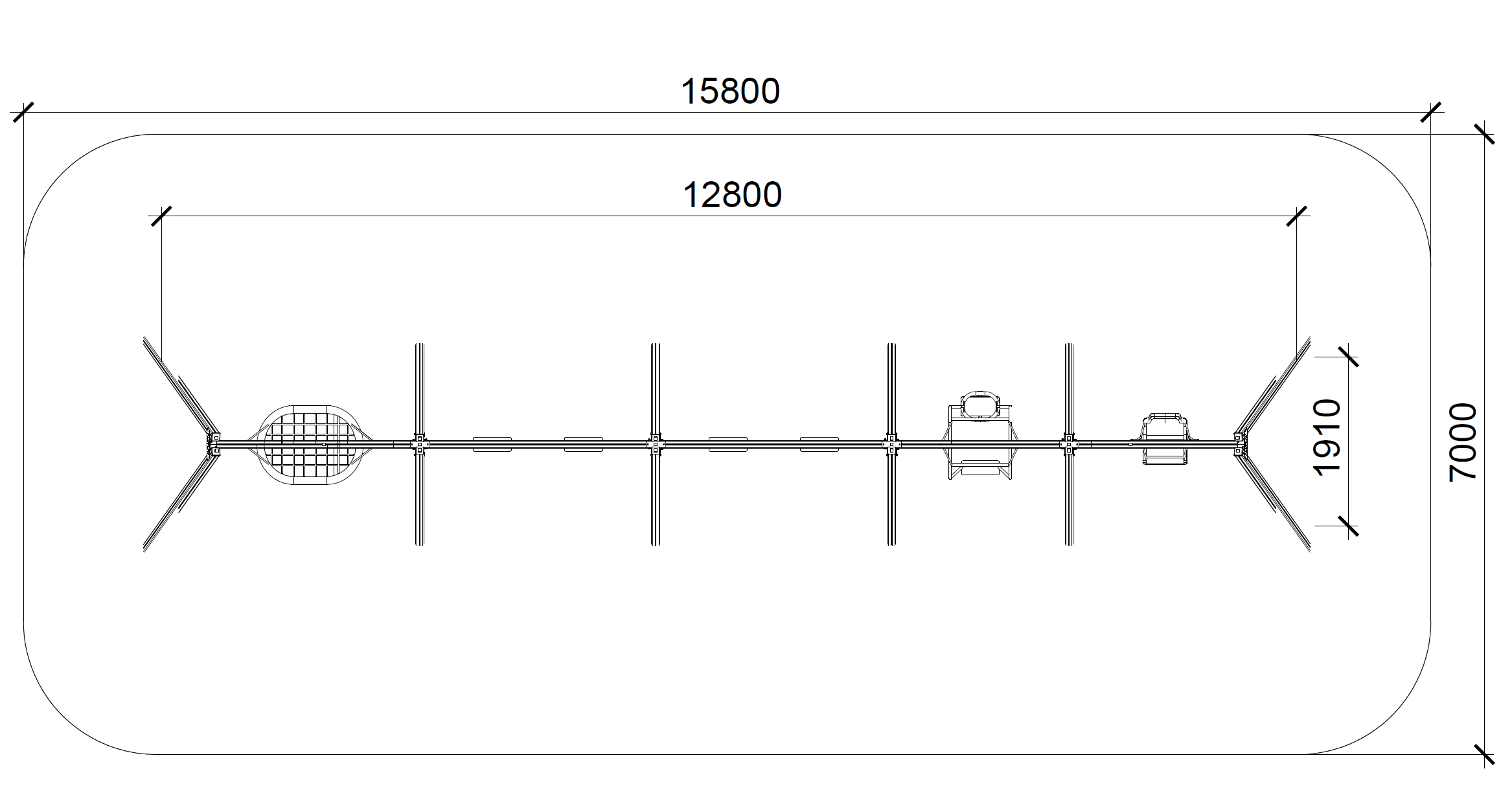 Mega ljuljačka A235 predstavlja sveobuhvatno i inkluzivno rješenje za velika javna igrališta. Sustav osam lančanih ljuljački uključuje sjedala za stariju djecu, malu djecu i odrasle osobe, posebno sjedalo za nepokretnu djecu te ovalno gnijezdo, čime omogućuje zajedničku i ravnopravnu igru djece različitih sposobnosti. Robusna anodizirana aluminijska konstrukcija i ovjesi od nehrđajućeg čelika osiguravaju iznimnu stabilnost, dug vijek trajanja i otpornost na vandalizam.
