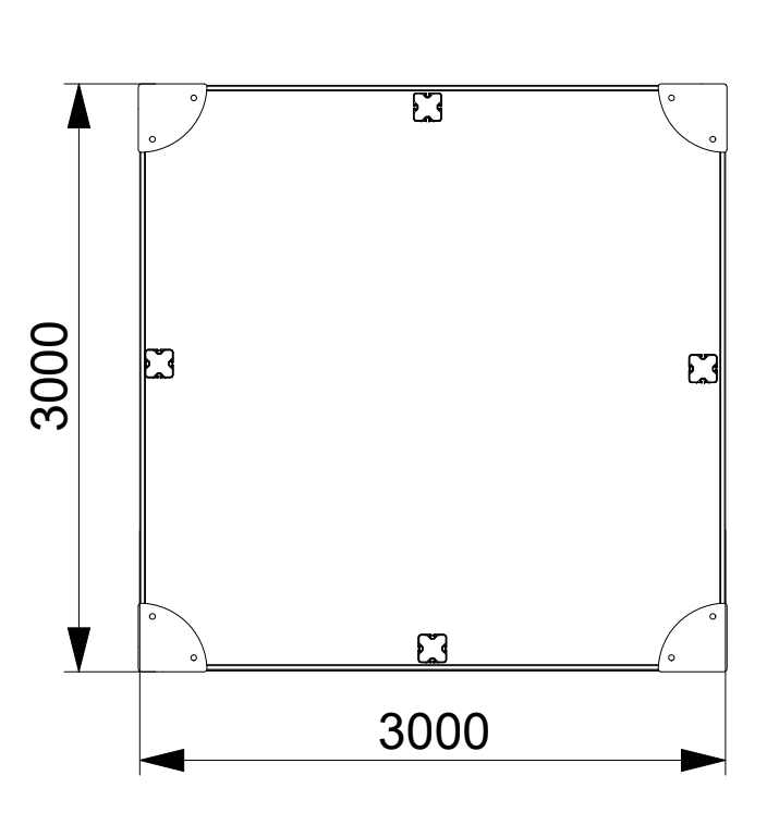 Pješčanik kvadratnog oblika dimenzija 3000 × 3000 × 310 mm izrađen je od aluminijskih profila i HDPE plastike s ugraviranim dječjim motivima. U kutovima se nalaze pojačanja koja služe kao sjedala za djecu i roditelje. Konstrukcija je otporna na vremenske uvjete, ne zahtijeva održavanje i dizajnirana je kao antivandal. Pogodan za vanjsku upotrebu i djecu u dobi od 2 do 9 godina.