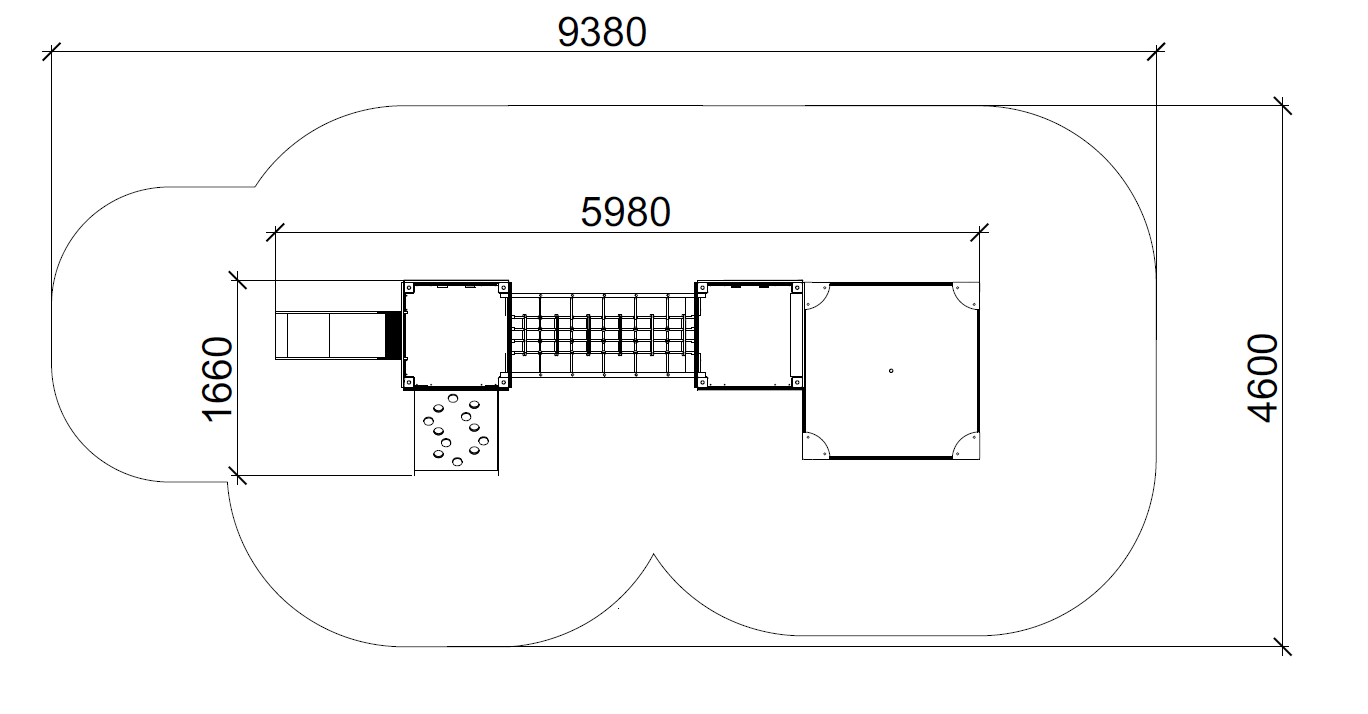 Mini most s tornjevima omogućuje djeci kretanje, penjanje i igru kroz povezane elemente različite visine. Konstrukcija potiče istraživanje i razvoj ravnoteže kroz igru.