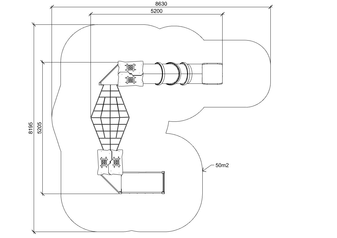 Balansni i penjački element dizajniran za poticanje koordinacije i kontrole tijela. Prikladan je za dječja igrališta i javne prostore s većim brojem korisnika.