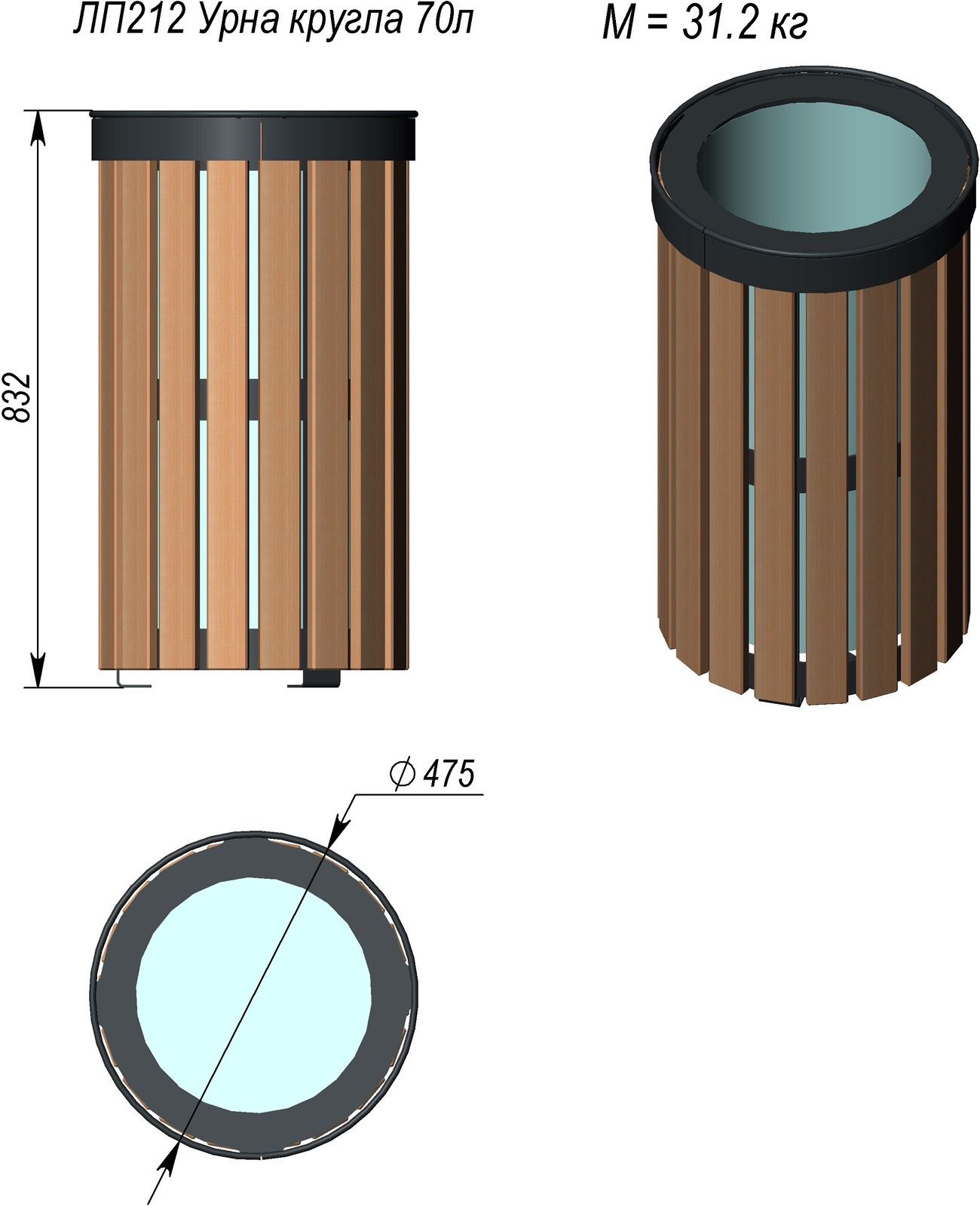 Vanjski koš za otpatke bez nadstrešnice izrađen je od masivne čelične konstrukcije s drvenim lamelama od borovine i uklonjivom pocinčanom posudom. Namijenjen je za parkove i gradske površine, jednostavan za održavanje i otporan na vandalizam.