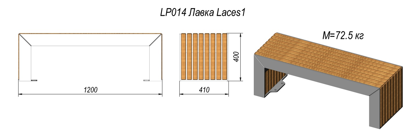Klupa „Vezice 1“ izrađena je od čelične konstrukcije s antikorozivnom zaštitom i letvica od borovine. Površinski je obrađena praškastim lakom te je pogodna za ugradnju u urbane i parkovne prostore. Sve noge mogu se sidriti vijcima ili betoniranjem.