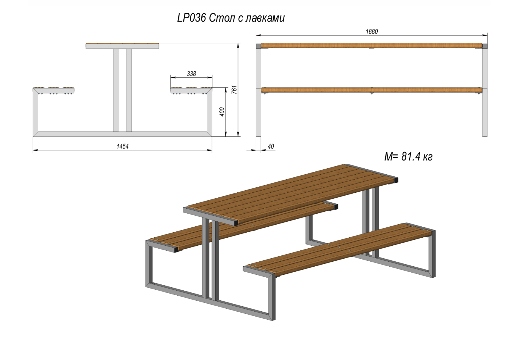 Parkovni piknik stol s klupama robusan je i praktičan element urbanog namještaja, idealan za parkove, školska dvorišta i javne površine. Izrađen je od masivne čelične konstrukcije i drvenih lamela, što osigurava stabilnost, dugotrajnost i ugodno korištenje. Konstrukcija je antikorozivno zaštićena i otporna na vandalizam, pogodna za sve vanjske uvjete.