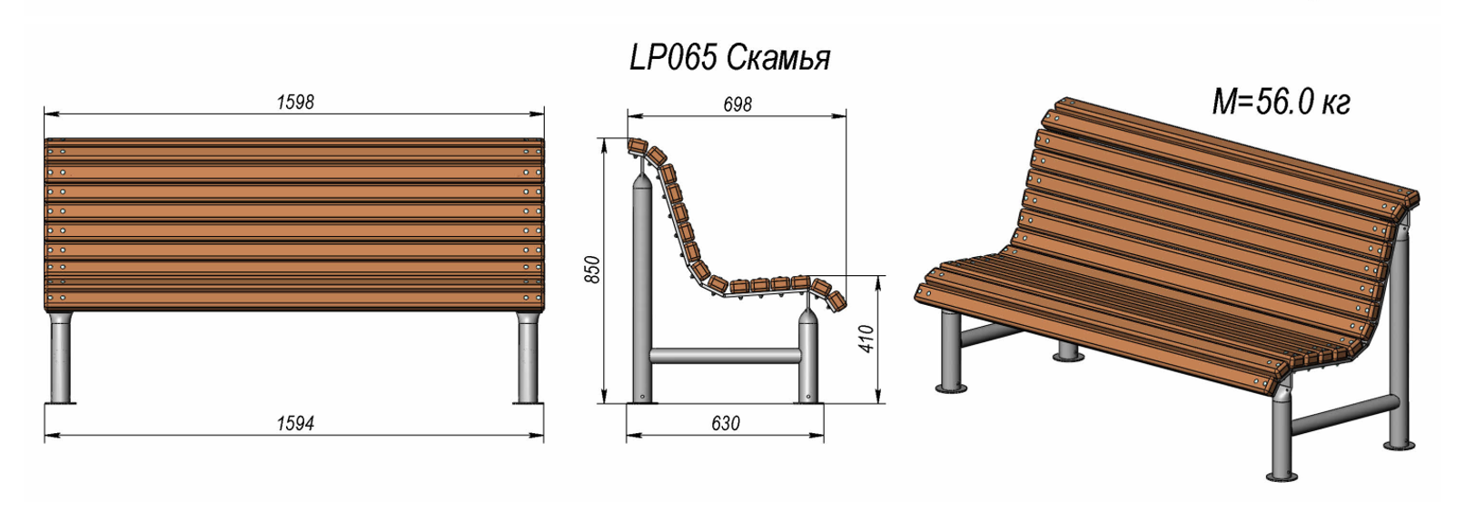 Parkovna klupa s naslonom izrađena je od čvrste čelične konstrukcije s antikorozivnom zaštitom i površinskom obradom praškastim lakom. Sjedalo i naslon izrađeni su od borovih letvica koje su čvrsto pričvršćene na okvir. Klupa je otporna na vremenske uvjete i vandalizam te namijenjena za postavljanje u parkove, trgove i urbane prostore.