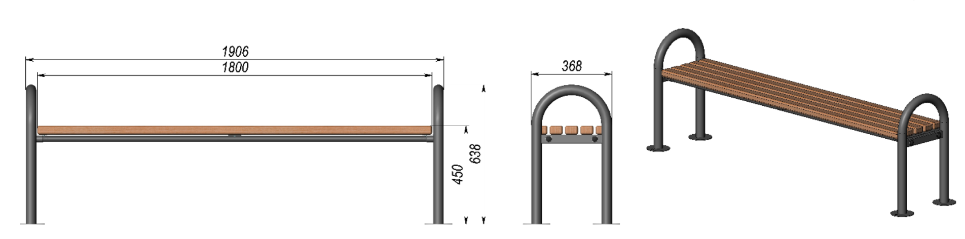 Parkovna klupa bez naslona „Prague“ izrađena je od čeličnog okvira i drvenih letvica od borovine. Površinski je obrađena praškastim premazom i lakom radi dugotrajne zaštite. Namijenjena je za ugradnju u gradske, parkovne i rekreacijske prostore.