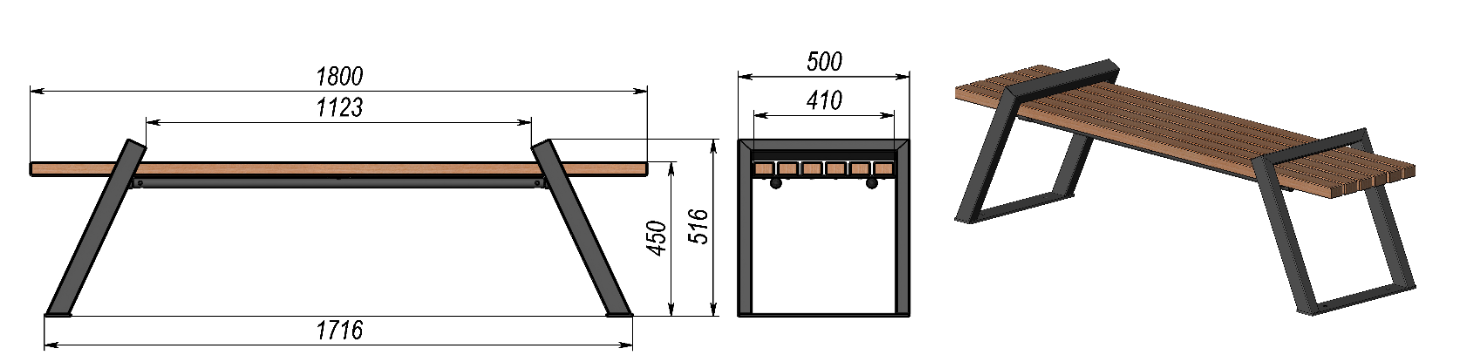 Klupa „Barcelona“ iz serije Španjolska izrađena je od čeličnog profila i borovih letvica. Površina je zaštićena praškastim premazom i lakiranjem, što osigurava otpornost na vremenske uvjete i dugotrajnost. Namijenjena je za postavljanje u parkove i urbane prostore.